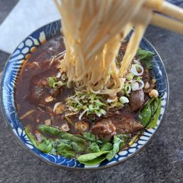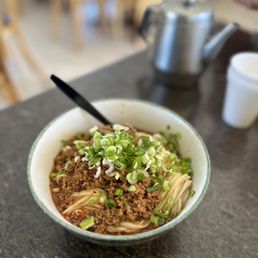The noodles are top notch here. They are very pricey considering it's flour and water. You will pay a lot for just flour and water. I made my sister come here for takeout 10 minutes before the 11:30am opening on a weekend. She made it out in less than 20 minutes; the food came out quickly. The noodles are tender and fresh. The sesame noodles are perfection. The beef noodle soup has the right beefy taste with spiciness; you get 4-5 pieces of beef and a little spinach. The portions are not big by any means. The Taiwanese food quality is amazing; unfortunately, the price doesn't match but it's good to have here and there.