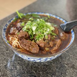 My friends wouldn't stop recommending Dai Ho to me since I'm always on the hunt for some good Taiwanese beef noodle soup. Because of their lunch-only hours, it was hard for me to find a time to come by to try it out. When I saw that they were featured as a Michelin-recognized Taiwanese restaurant, I made time to stop by. It was my and my partner's first meal as a married couple! I heard that there would be a wait before opening, so we arrive at around 11:20am. They have a small parking lot in the back, and there were still a few spots open when we arrive, but there were a couple other cars already there. There wasn't anyone waiting outside, but since it was a Friday there was probably less people waiting around. When we got out of the car around 11:25 though there was a group already waiting out front, but that was the only group. We walked to the front door facing the main street, but when the lady unlocked the door for us she advised that they actually keep that front door locked and have everyone come in through the back door where the parking lot is. We sat down at a table, and the server came to our table to take our orders. Once we were finished with our meal, we went to the front counter to pay. It's cash only here! We both ordered the Beef Noodle Soup ($18), and it took about 20 minutes for both bowls to come out. They have some veggies and side dishes out on display at the front, but we didn't get any this time. I probably will next time though. It was definitely the best beef noodle soup I've had in the US so far. There's plenty of beef pieces, and the broth was so flavorful with a little bit of spice for a small kick, but not too much. There's also a handful of spinach to give a bit of a refreshment from the heaviness of the broth. They also give you a lot of it, and I had enough left over for a second meal. The bowls come out piping hot and it was tough eating it because I wanted to take bigger slurps but I didn't want to burn my tongue either. All my Taiwanese friends, and then myself, approve of the beef noodle soup here. Not sure about the other things on the menu but I know other people have gotten things other than the beef noodle soup here so they can't be bad either. I can definitely see how it's Michelin recognized though. It's a shame that they're only open 3 hours a day though because more people need to get a taste of their beef noodle soup. Just remember that it's cash only.